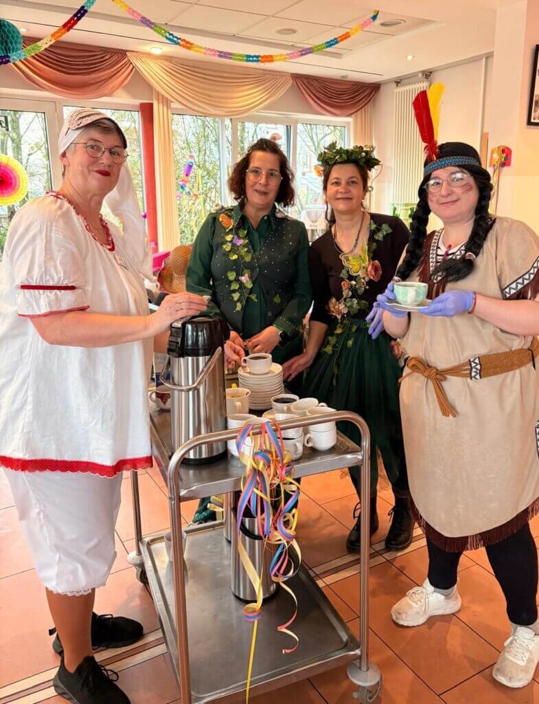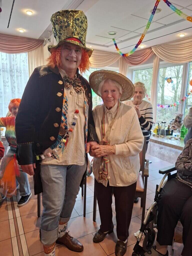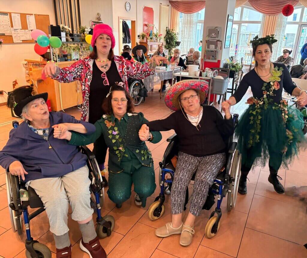 Ein großes Lob geht an unsere Mitarbeiter. Die haben sich nicht nur bei den Kostümen richtig Mühe gegeben, sondern mit ihren Tanzeinlagen und der guten Laune dafür gesorgt, dass der Funke sofort übergesprungen ist. Solche Tage sind auch für uns im Team etwas Besonderes, weil wir einfach mal gemeinsam mit den Bewohnern den Alltag vergessen und feiern können.