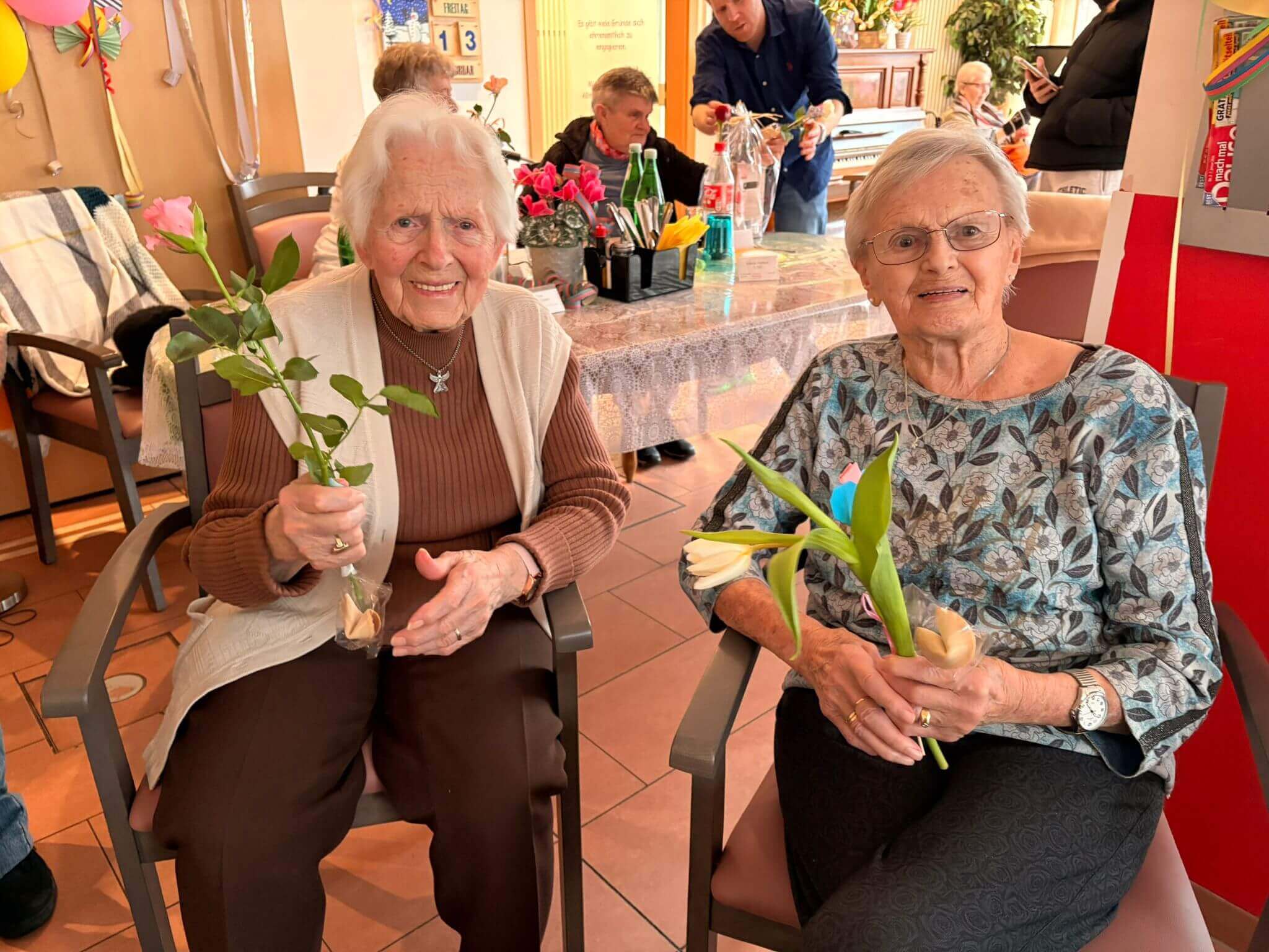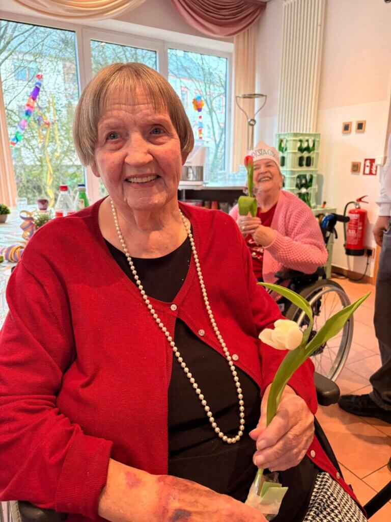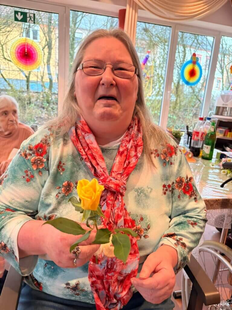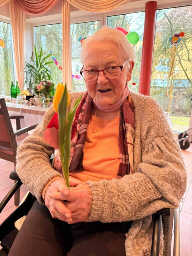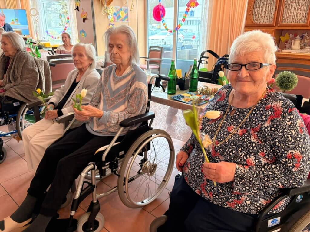 Die Jugendlichen haben die Blumen im Haus verteilt und damit für viele lächelnde Gesichter gesorgt. Es ist schön zu sehen, dass die junge Generation an unsere Senioren denkt und mit so einer Aktion ein bisschen Farbe und Freude in den Tag bringt. Solche Aufmerksamkeiten kommen bei unseren Bewohnern immer richtig gut an.
