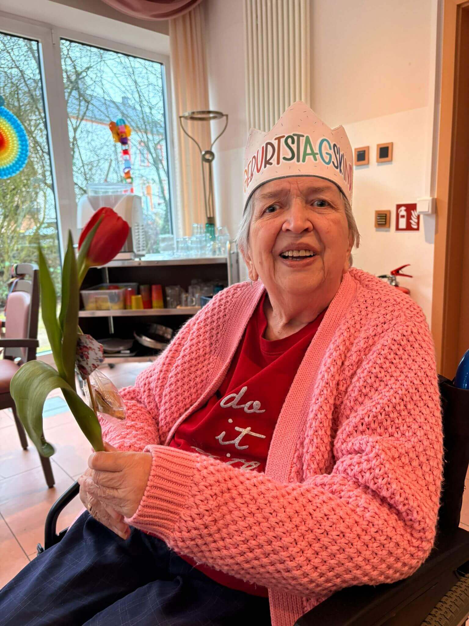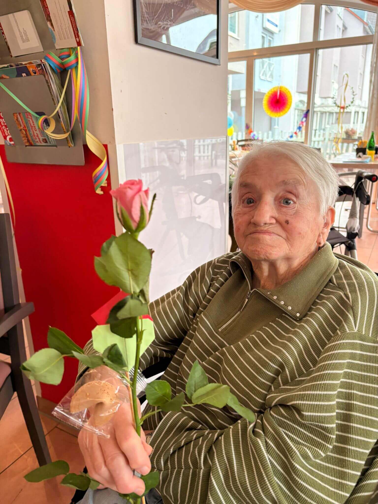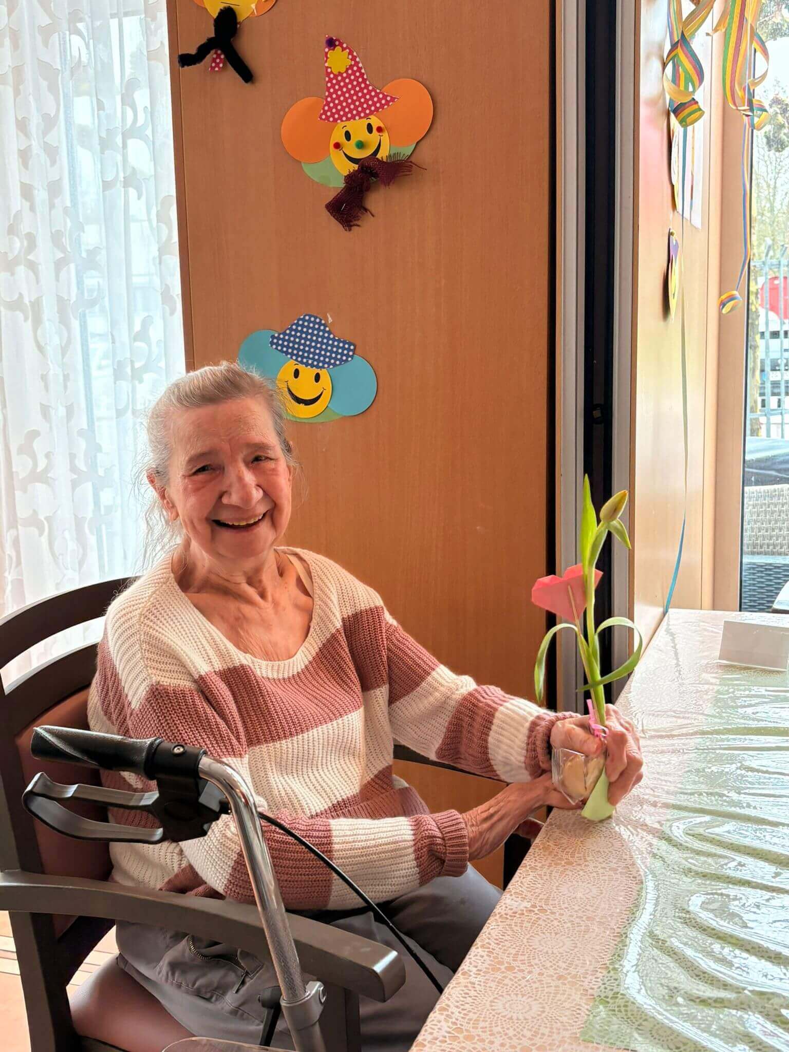 Die Jugendlichen haben die Blumen im Haus verteilt und damit für viele lächelnde Gesichter gesorgt. Es ist schön zu sehen, dass die junge Generation an unsere Senioren denkt und mit so einer Aktion ein bisschen Farbe und Freude in den Tag bringt. Solche Aufmerksamkeiten kommen bei unseren Bewohnern immer richtig gut an.