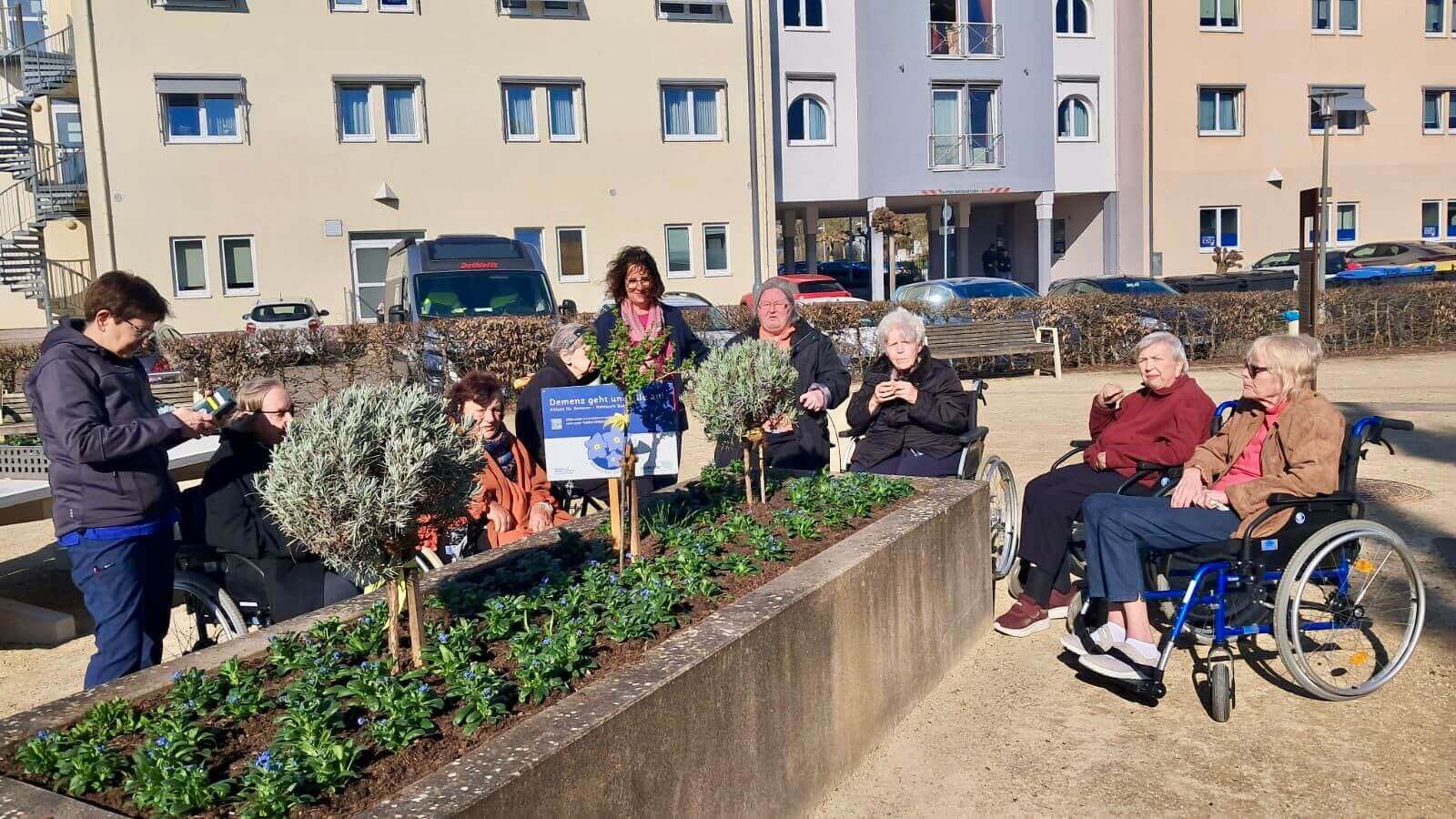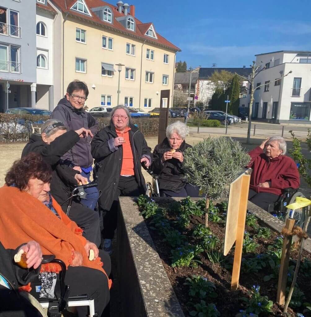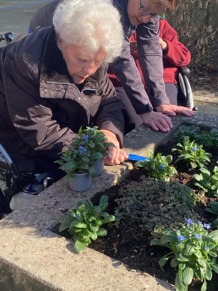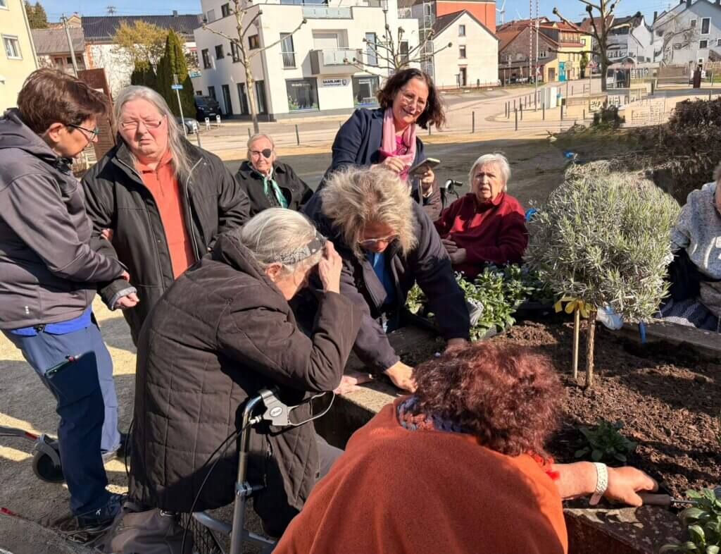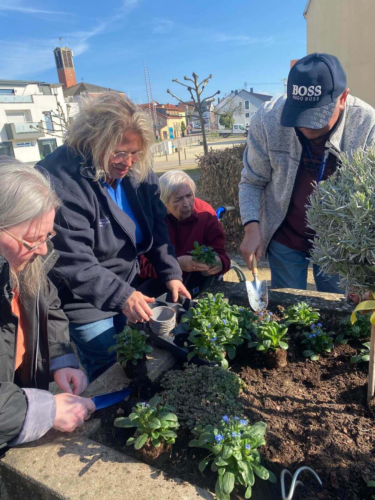Im Herzen von Schmelz kamen unsere Bewohnerinnen und Bewohner mit fleißigen Helfern und Verantwortlichen der Gemeinde zusammen, um das Hochbeet mit den leuchtend blauen Vergissmeinnicht zu bepflanzen.