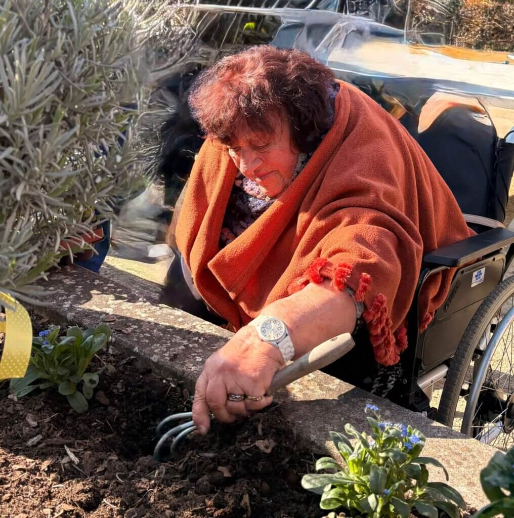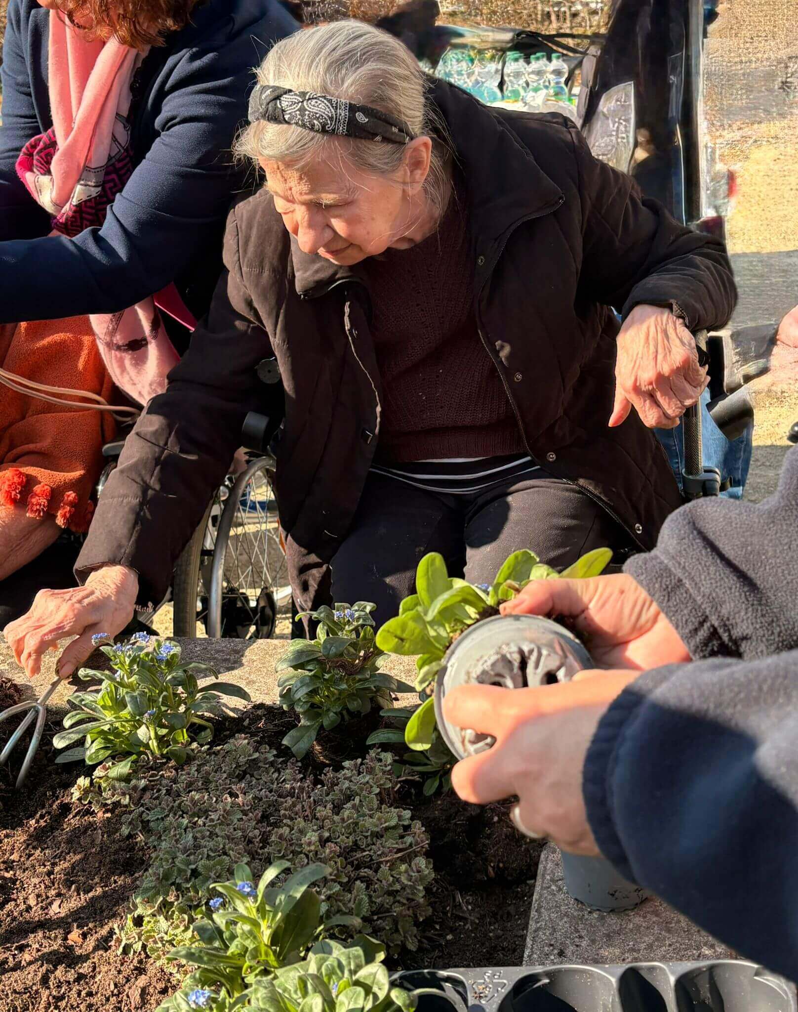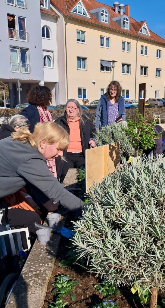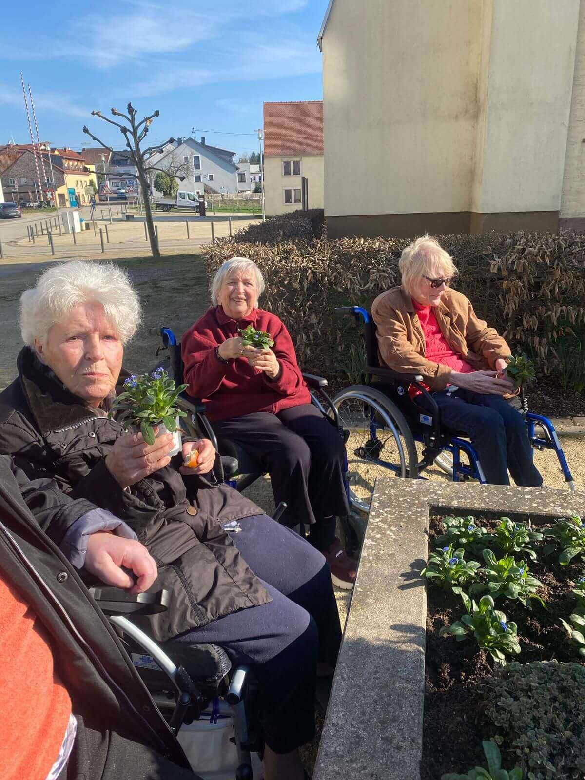 Im Herzen von Schmelz kamen unsere Bewohnerinnen und Bewohner mit fleißigen Helfern und Verantwortlichen der Gemeinde zusammen, um das Hochbeet mit den leuchtend blauen Vergissmeinnicht zu bepflanzen.